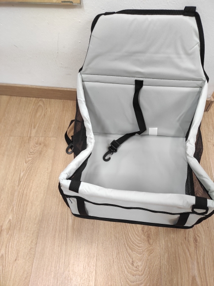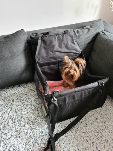 Good thing. The dog is comfortable sitting. Our poodle weighing 4,5 kg, it is comfortable to sit, lie probably tight). Of the minuses: a very strong smell, but must weathered, and for my car was short one of the straps of fastening, not critical, but because of this, the back of this seat is a little in the air and not on the car chair.