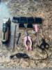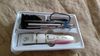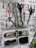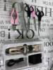 The mobible blade. It says the manual that is from ceramica (I don't trust it). The rest can happen. The scissors. Comb. Cut nails and lime. They're metalic. Scissors handles and nail clippers. Of plastic. Manual in castellano