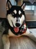 Шарф очень красивый. Моя собака очень активная, поэтому я решила пришить пуговицу и сделать отверстие для неё,чтобы точно все держалось. Если у вас собака среднего размера как у меня, я советую сделать тоже самое. Для маленьких пород можно и завязать шарф. Рекомендую к покупке ♡