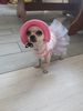 Very cute! Got my pup a size M and it fits perfect. She doesn’t try to whack it off or anything. So adorable, all the other dogs drool when she walks by.